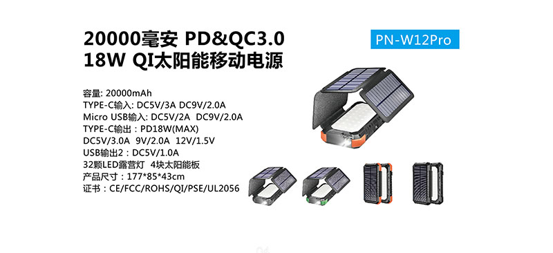 » PN-W12Pro 20000mAh太阳能移动电源